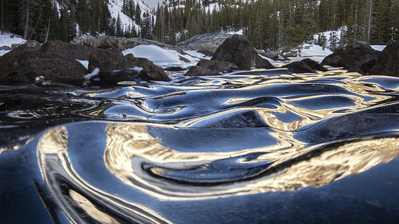 Autorem fotografii jest Eric Gross. Ukazuje ona jezioro alpejskie położone w Górach Skalistych w Kolorado, USA, 4 tysiące metrów nad poziomem morza. Na zdjęciu widać wodę w jeziorze zamarzniętą w dziwnych, przypominających fale kształtach. Ich kształt tłumaczy się plastycznością lodu na jeziorze. Ten zamarzał przez noc a następnie, w ciągu dnia, lekko topniał w słonecznym świetle. Trwające w Górach Skalistych silne wiatry kształtowały rozmrożony lód tak, by przypominał fale.